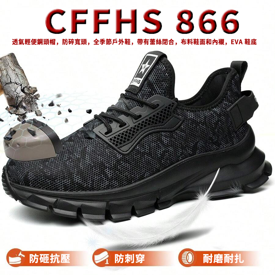 CFFHS 866 透氣輕便鋼頭鞋,防砸寬頭,全季節戶外鞋,全季安全鞋,布料鞋面和內襯,EVA 鞋底